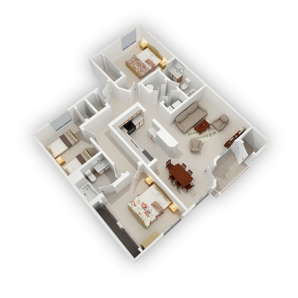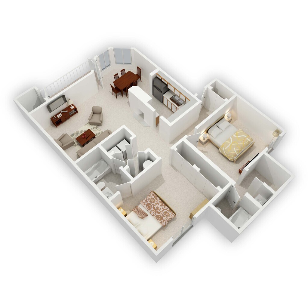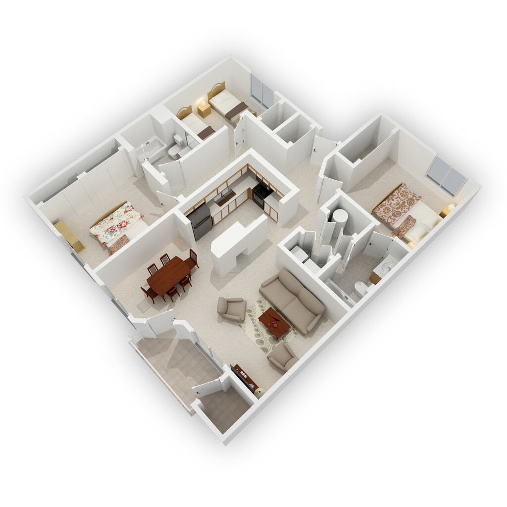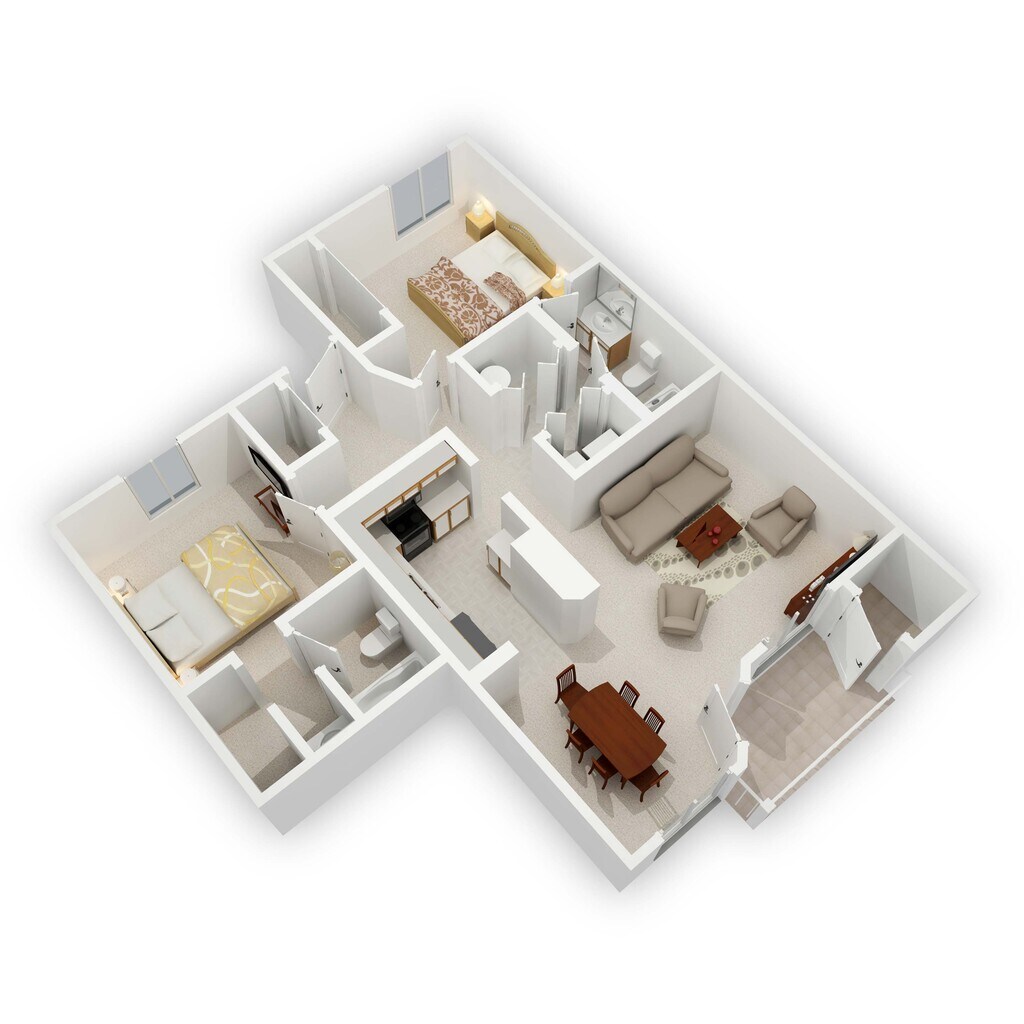 Modelo de apartamento: 2 Bedroom SplitDesde $1,7302 Dormitorios, 2 Baños, 1104 sq ftDisponible Ahora![]()