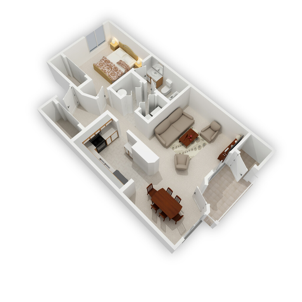 1 Dormitorio, 1 Baño, 850 pies²Disponible AhoraGalería del Modelo
