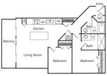 Modelo de apartamento: B4Desde $2,3432 Dormitorios, 1 Baño, 877-955 sq ftDisponible Ahora![]()
