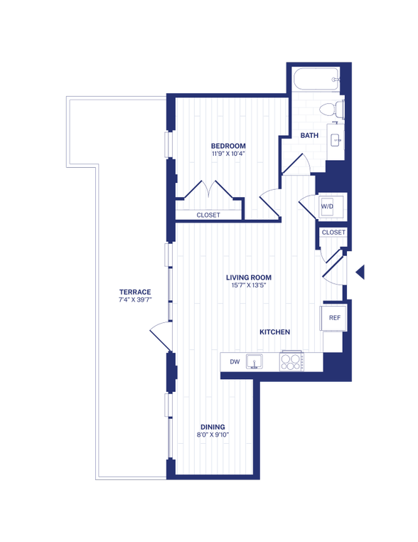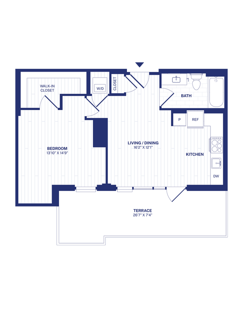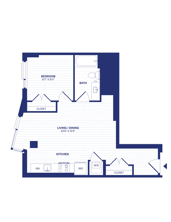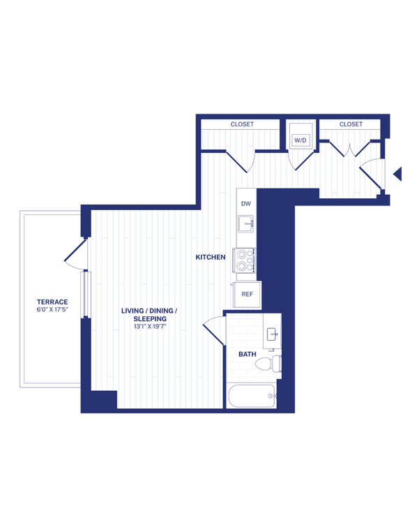 Modelo de apartamento: STA7Desde $1,690Estudio, 1 Baño, 469 sq ftDisponible Ahora![]()