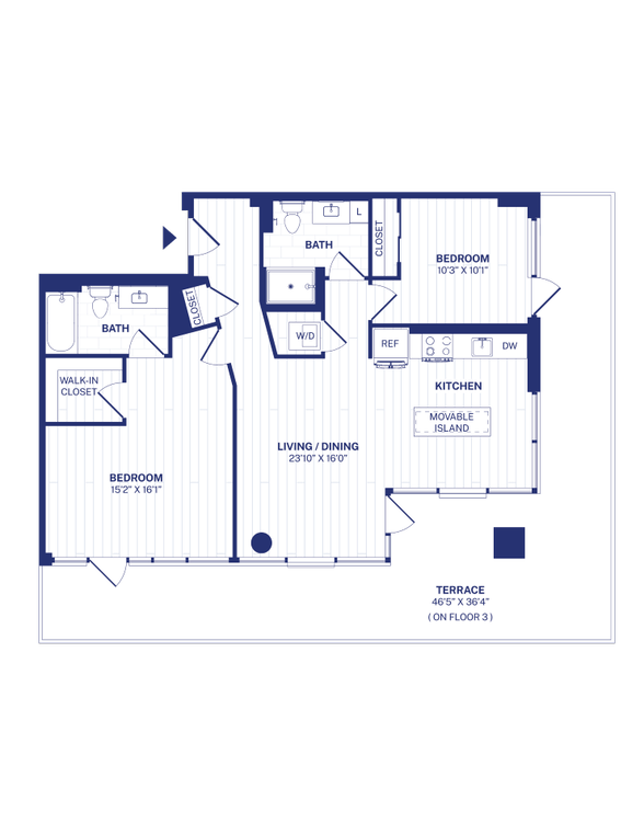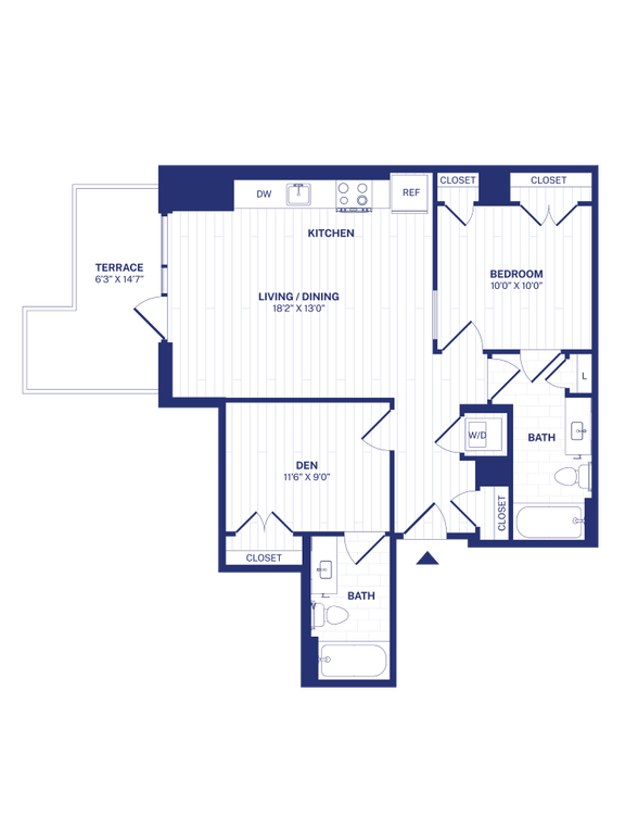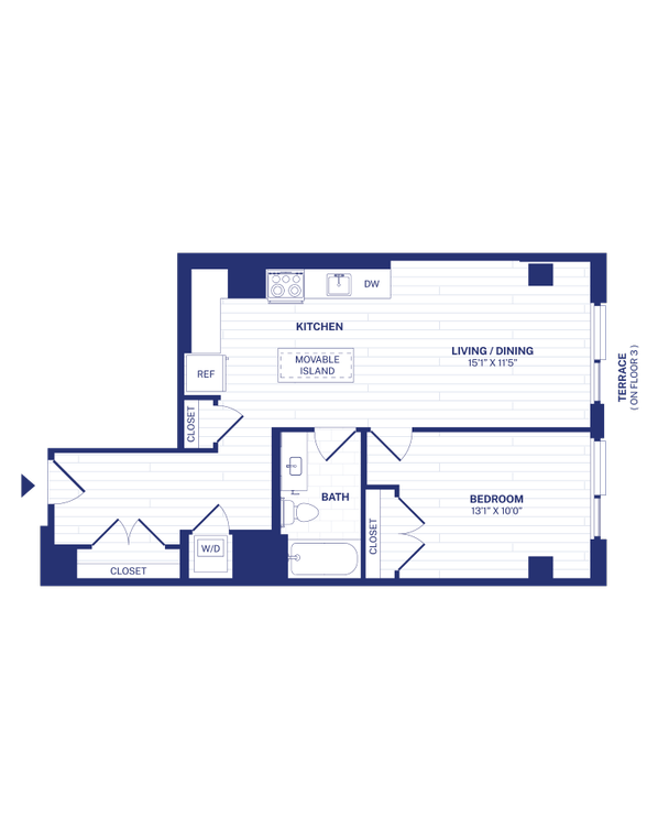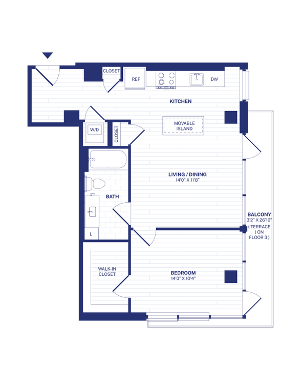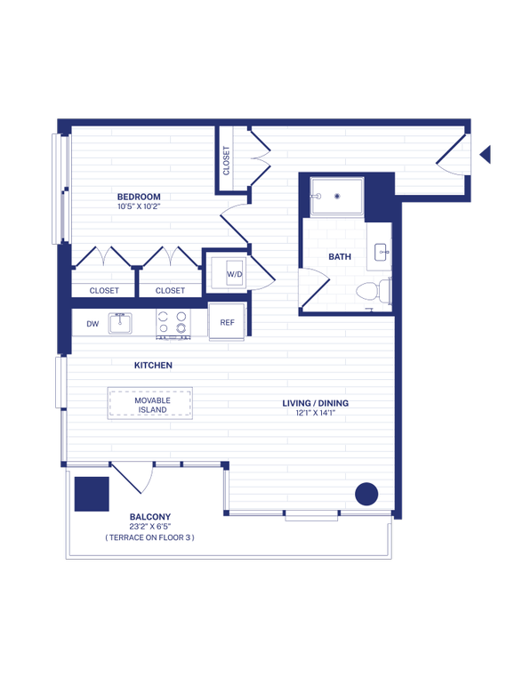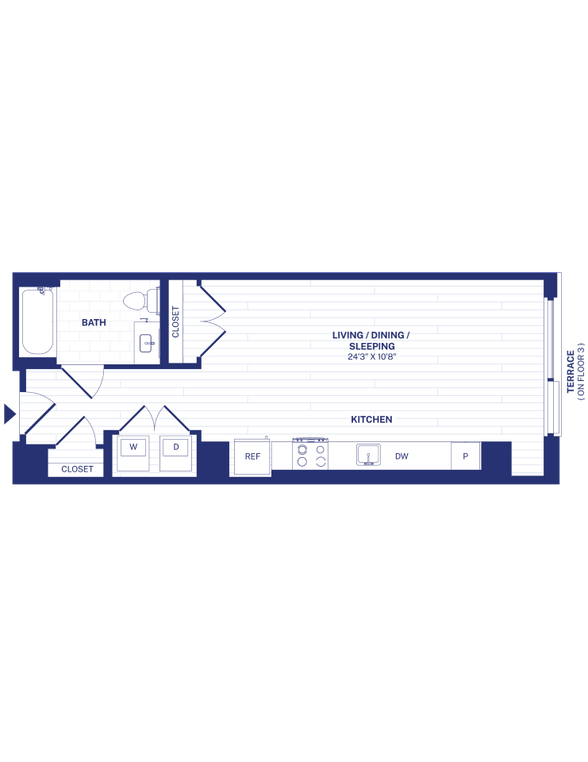 Modelo de apartamento: STA3Desde $1,590Estudio, 1 Baño, 410 sq ftDisponible Ahora![]()