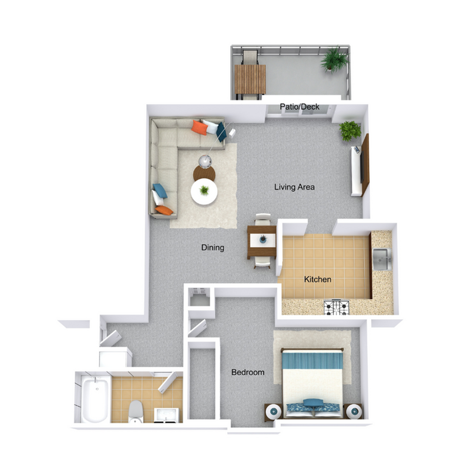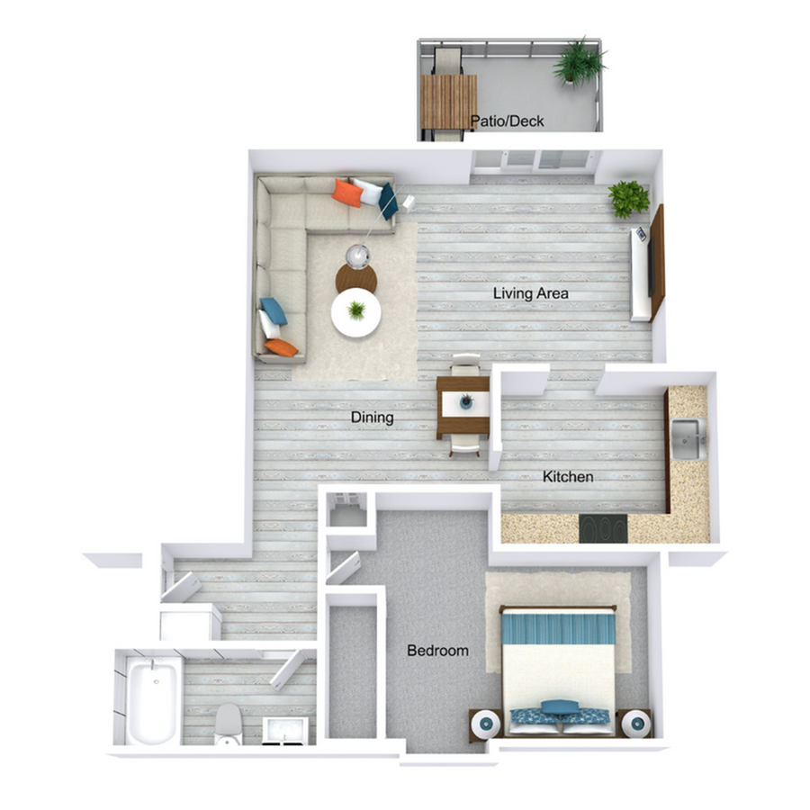 1 Dormitorio, 1 Baño, 845 pies²Precio Mensual TotalDisponible AhoraGalería del Modelo