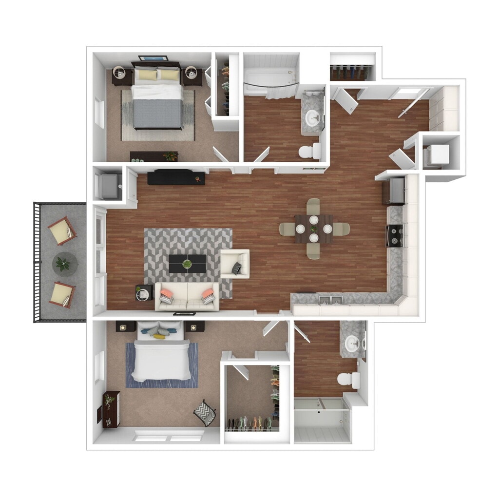 Modelo de apartamento: Two Bedroom Two BathroomDesde $1,1102 Dormitorios, 2 Baños, 1007 sq ftDisponible Ahora![]()