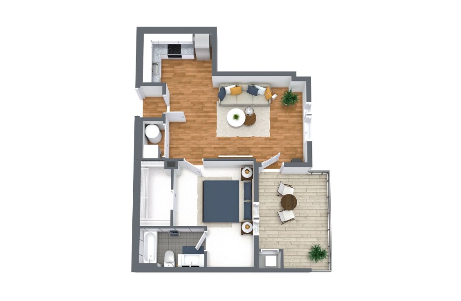 Modelo de apartamento: ConfluenceLlame para Precios1 Dormitorio, 1 Baño, 576 sq ftNo Disponible![]()