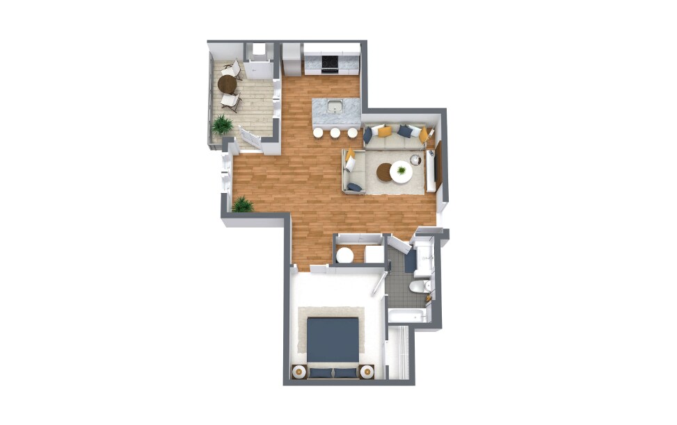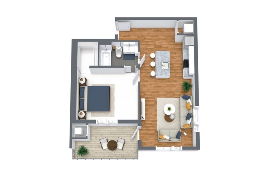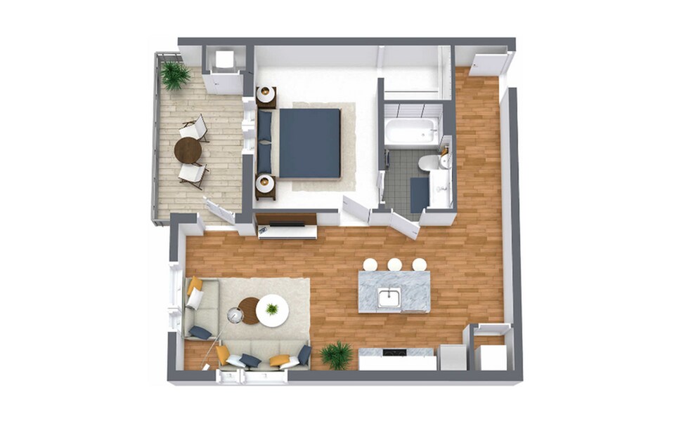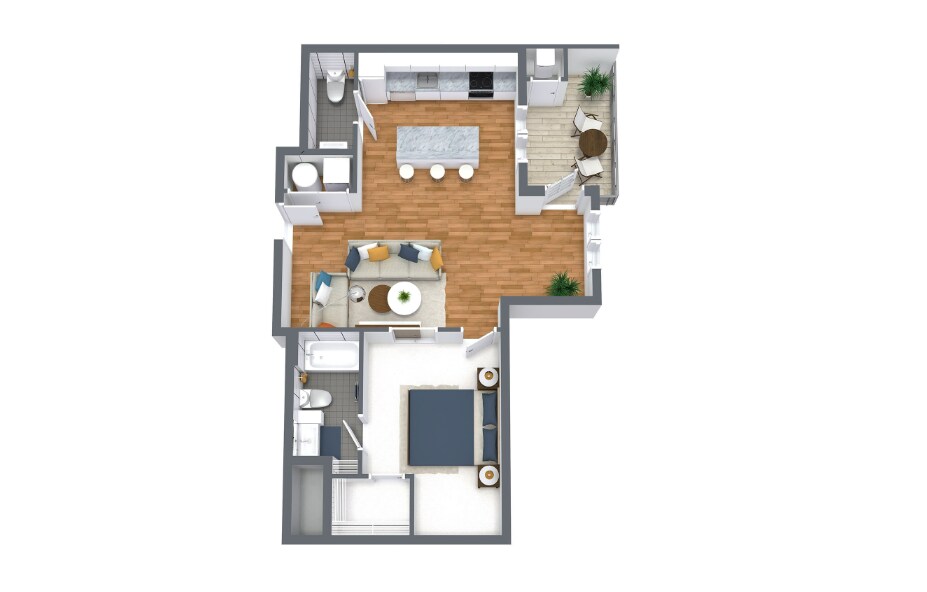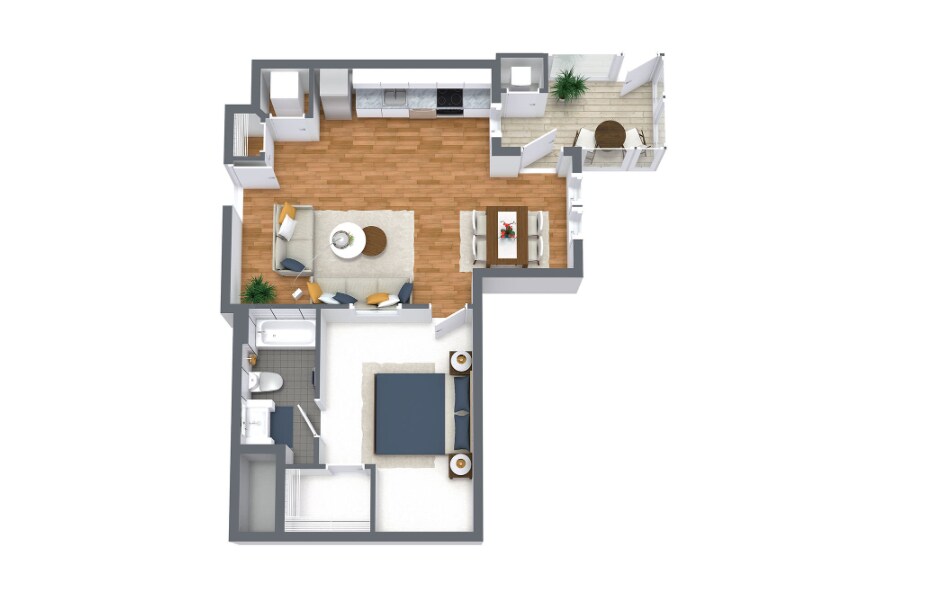 Modelo de apartamento: DeltaDesde $1,2871 Dormitorio, 1 Baño, 754 sq ftDisponible Ahora![]()