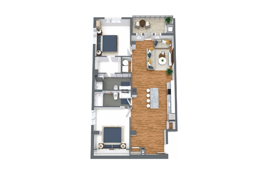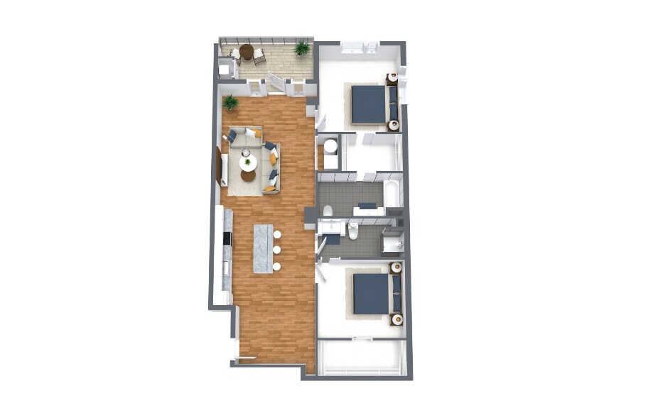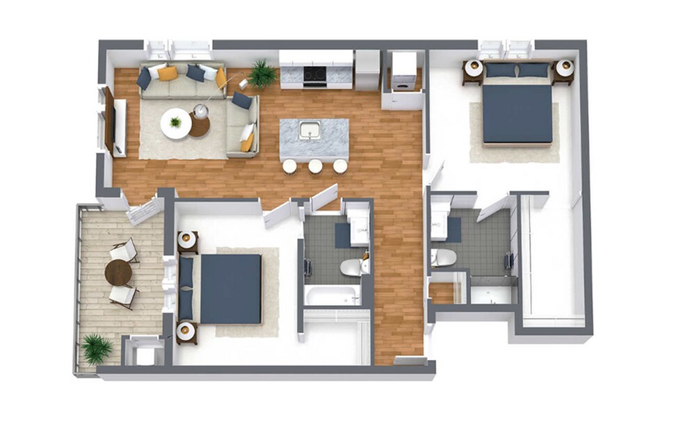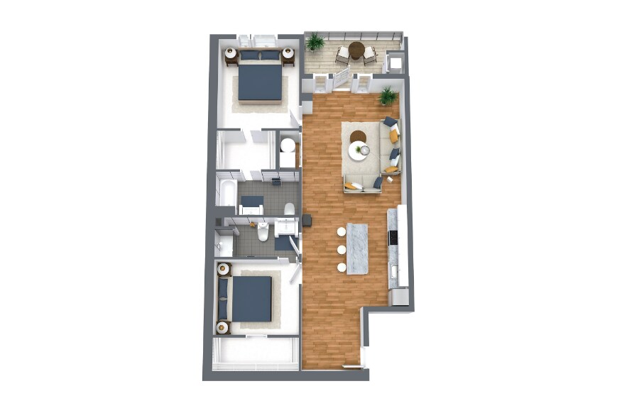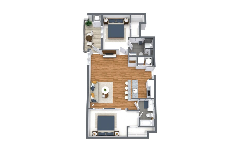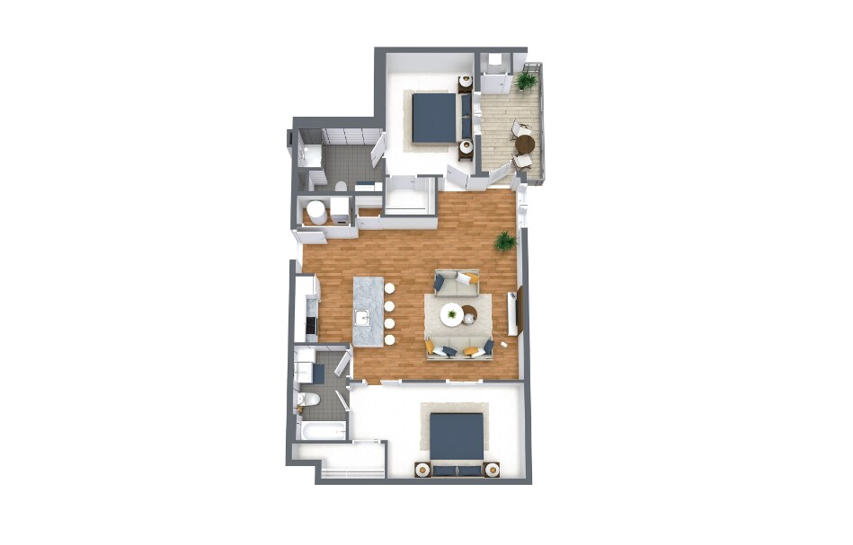 Modelo de apartamento: DeltaDesde $1,2871 Dormitorio, 1 Baño, 754 sq ftDisponible Ahora![]()