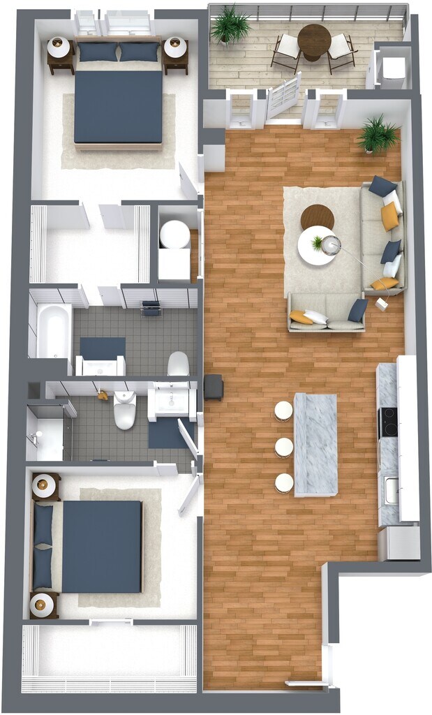 1 Dormitorio, 1 Baño, 754 pies²Disponible AhoraGalería del Modelo