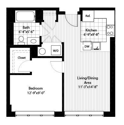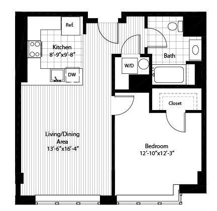 1 Dormitorio, 1 Baño, 802 pies²Disponible AhoraGalería del Modelo