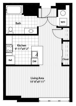 Modelo de apartamento: S2Llame para PreciosEstudio, 1 Baño, 564 sq ftNo DisponibleS2 - Plano 1 1 Dormitorio