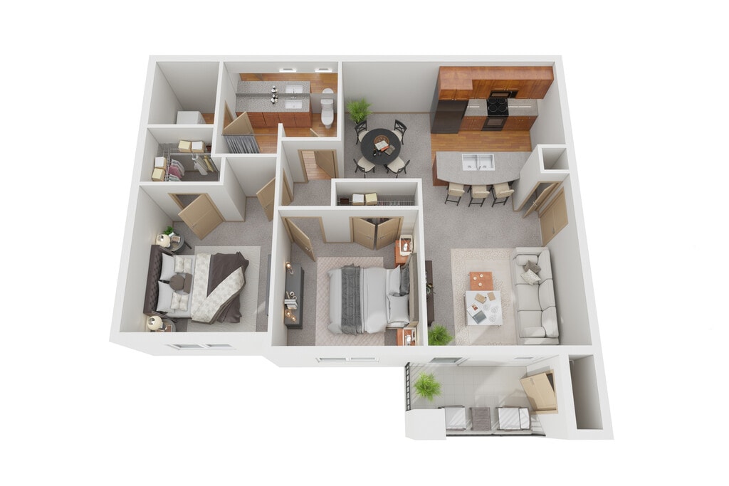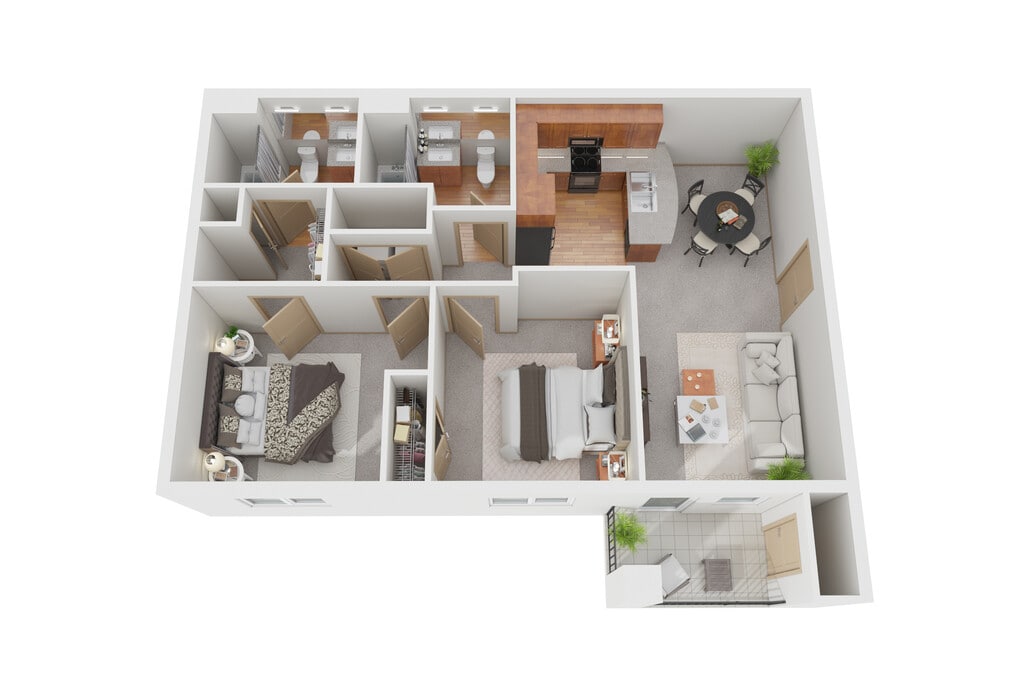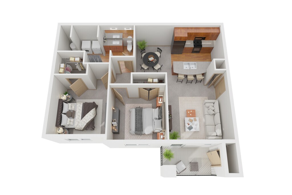 2 Dormitorios, 1 Baño, 930-934 pies²Disponible AhoraGalería del Modelo