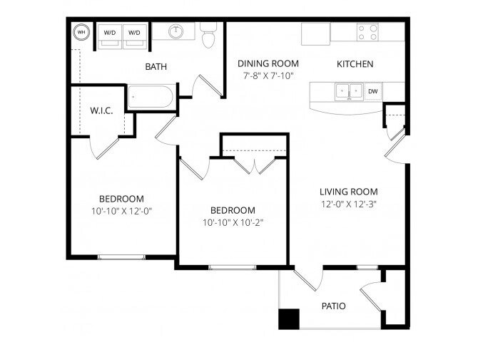 Modelo de apartamento: Beacon2 Dormitorios, 1 Baño, 930-934 sq ftDisponible Ahora![]()
