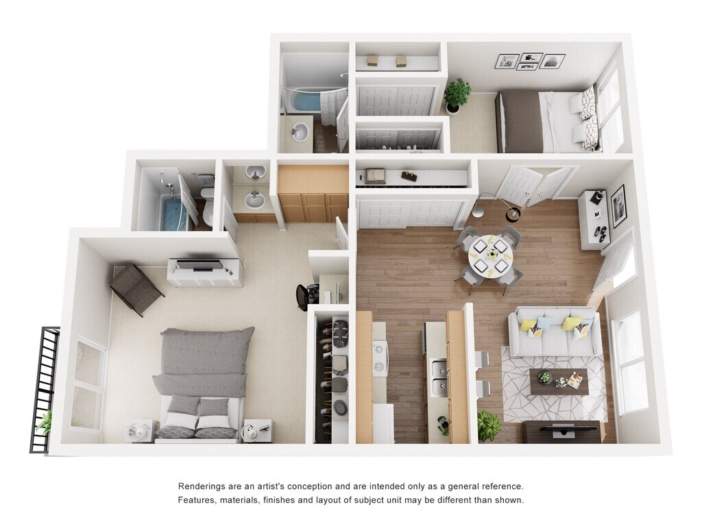 Modelo de apartamento: 2 Bedroom 2 BathLlame para Precios2 Dormitorios, 2 Baños, 900 sq ftNo Disponible![]()