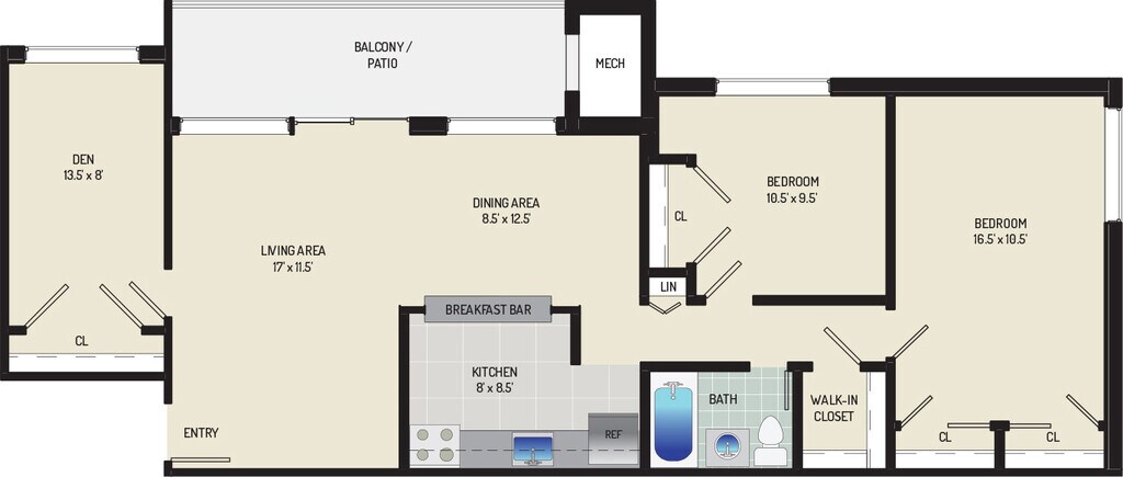 1 Bedroom + 1 Bath - Plano 13 ![]()