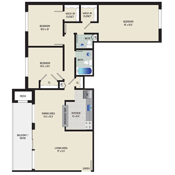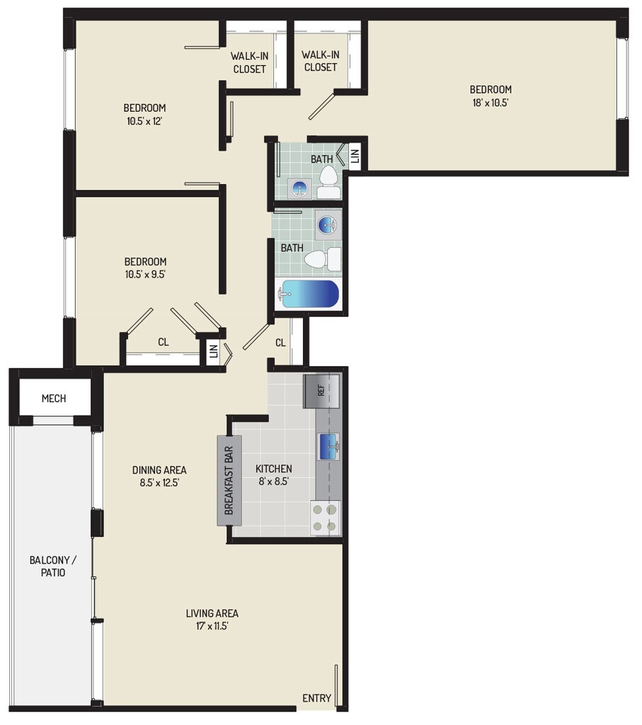 1 Bedroom + 1 Bath - Plano 11 ![]()