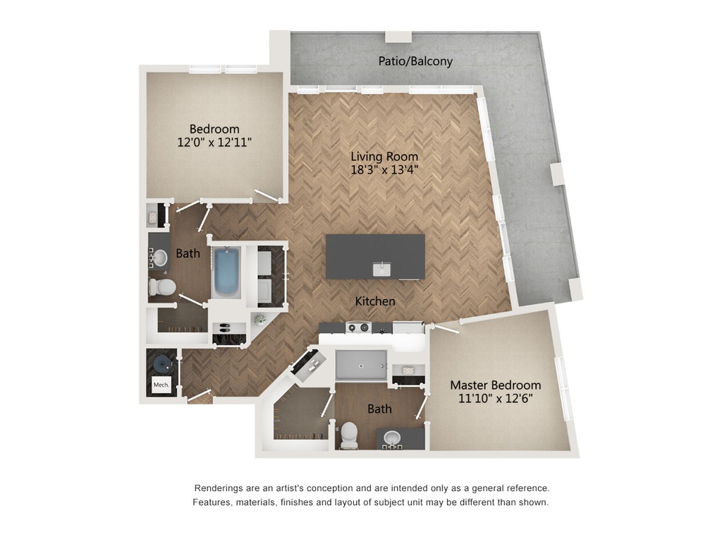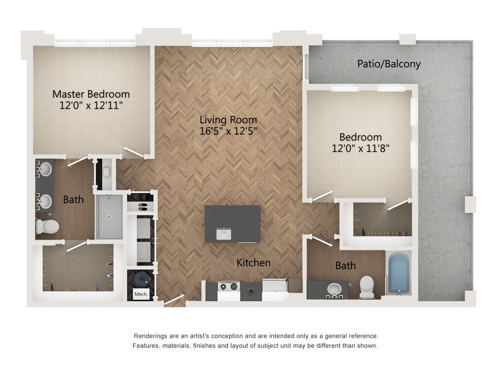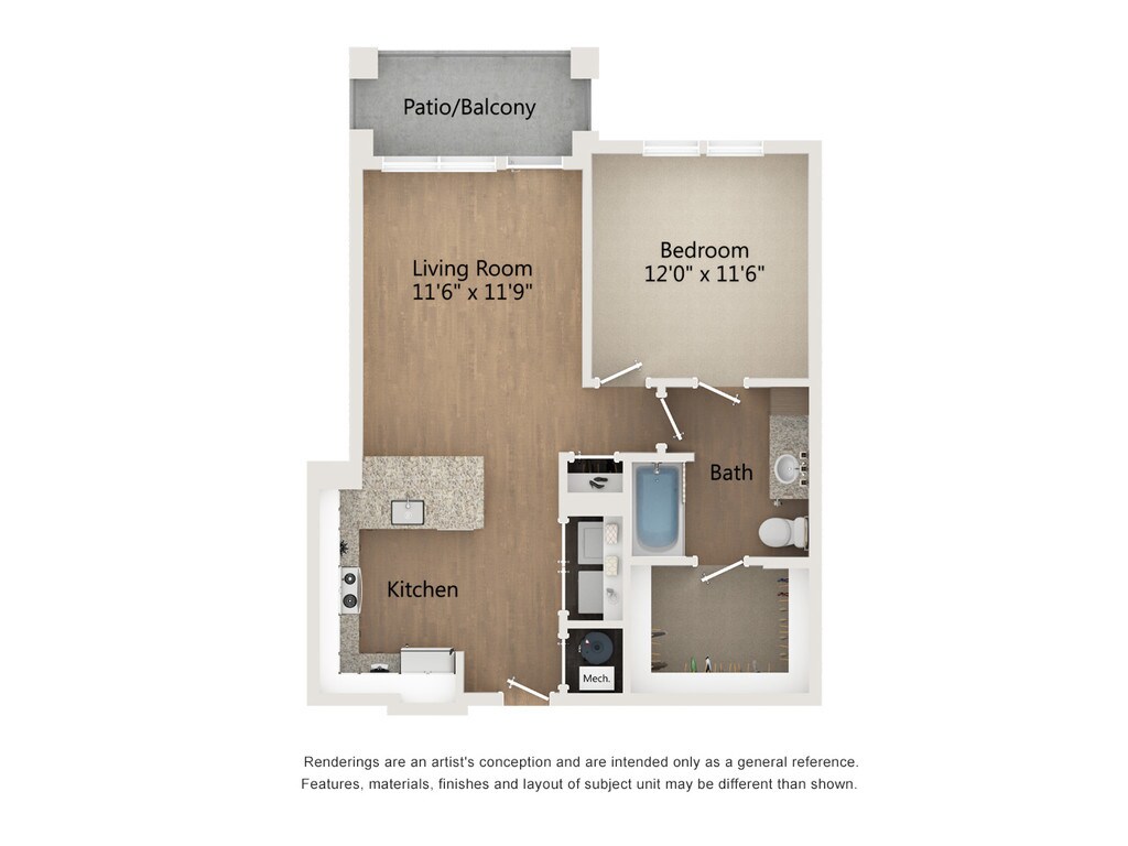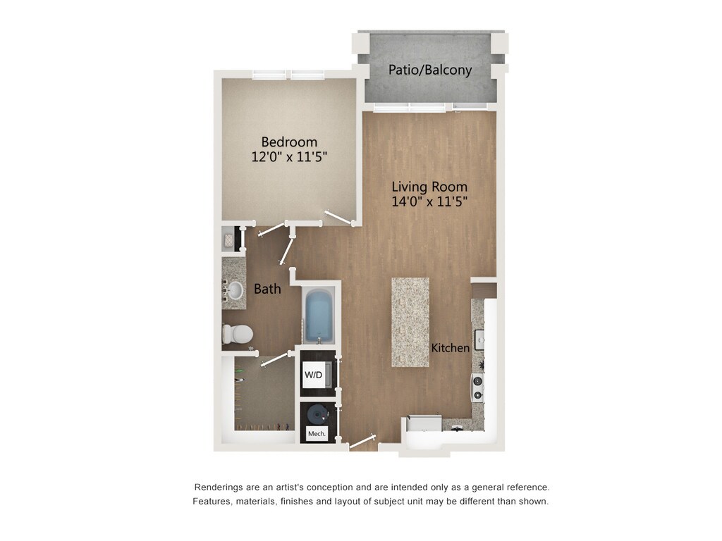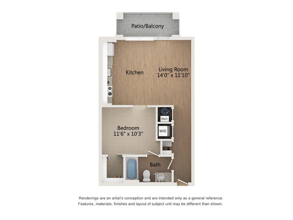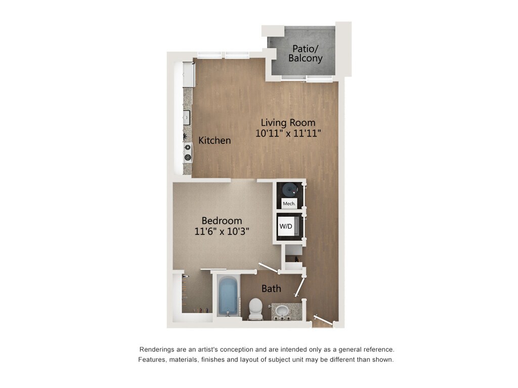 1 Dormitorio, 1 Baño, 758 pies²Disponible January 10, 2026Galería del Modelo