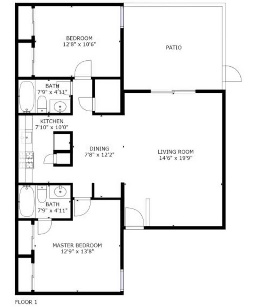 Modelo de apartamento: 2x2$1,2992 Dormitorios, 2 Baños, 1000 sq ftDisponible Ahora![]()