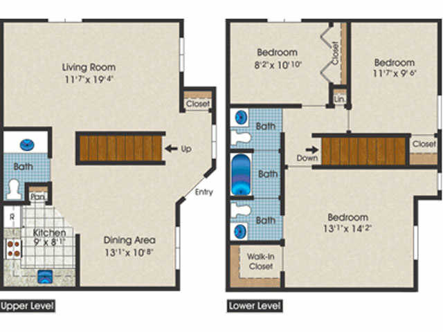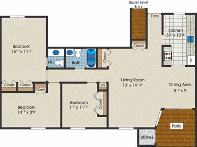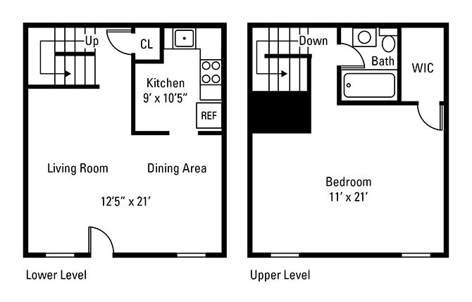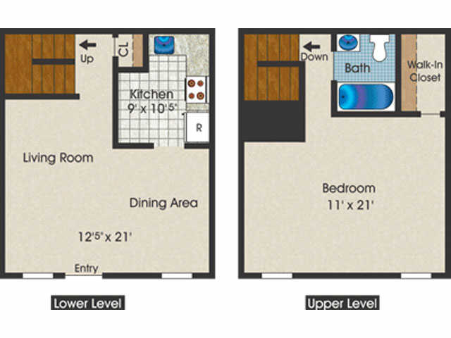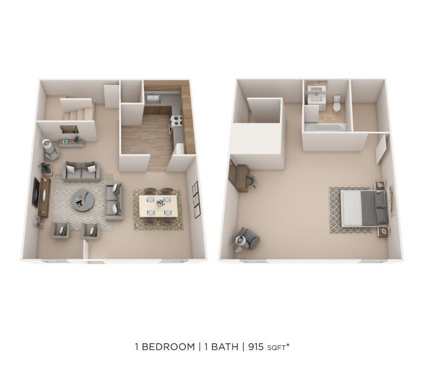 Modelo de apartamento: One Bedroom 1.5 Bath Townhome - 915 sqftLlame para Precios1 Dormitorio, 1 Baño, 915 sq ftNo Disponible![]()