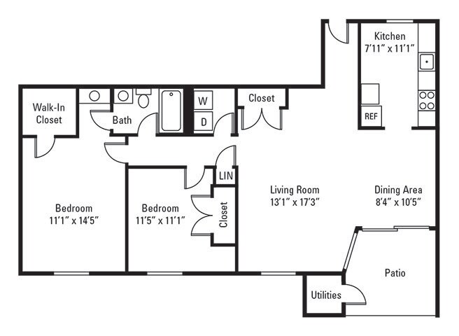 One Bedroom - 702 sqft - Plano 2 ![]()
