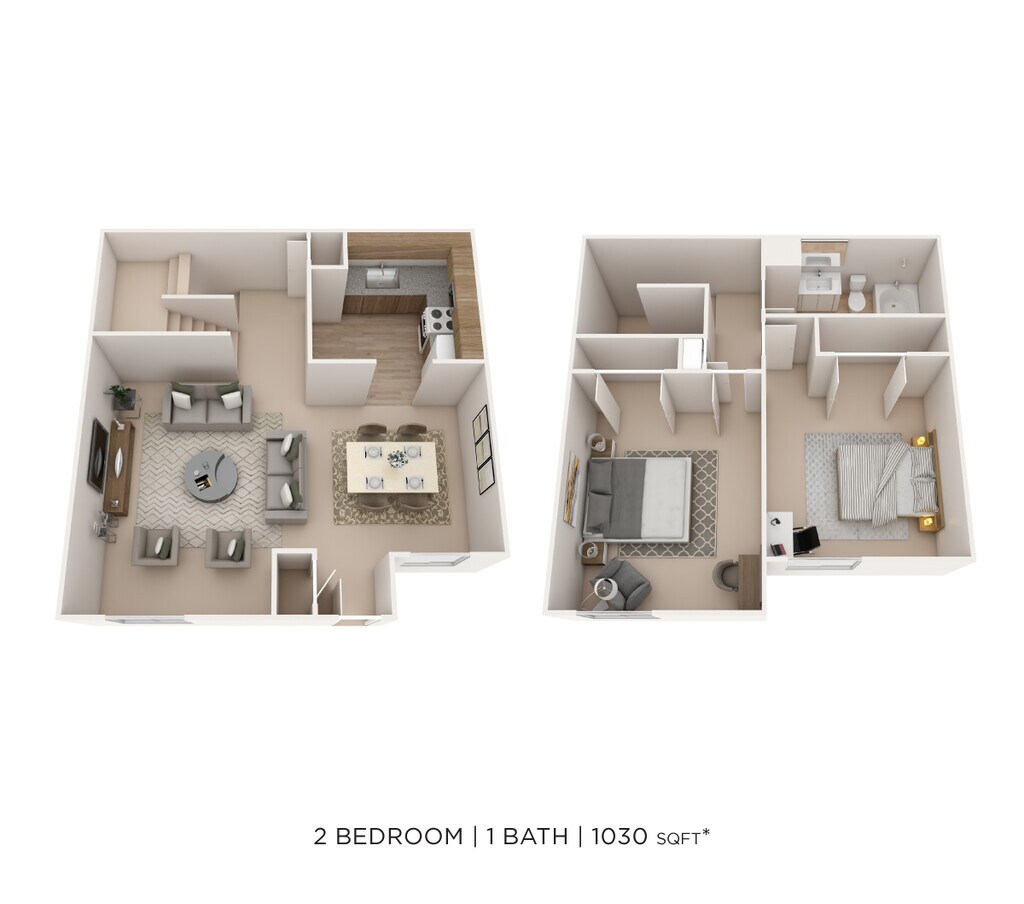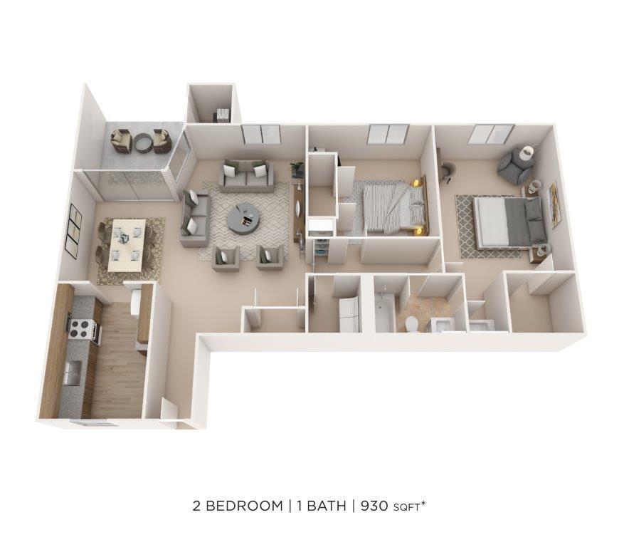 2 Dormitorios, 1 Baño, 930-1030 pies²Disponible AhoraEl más baratoEsta opción tiene los precios más bajos para este modeloGalería del Modelo