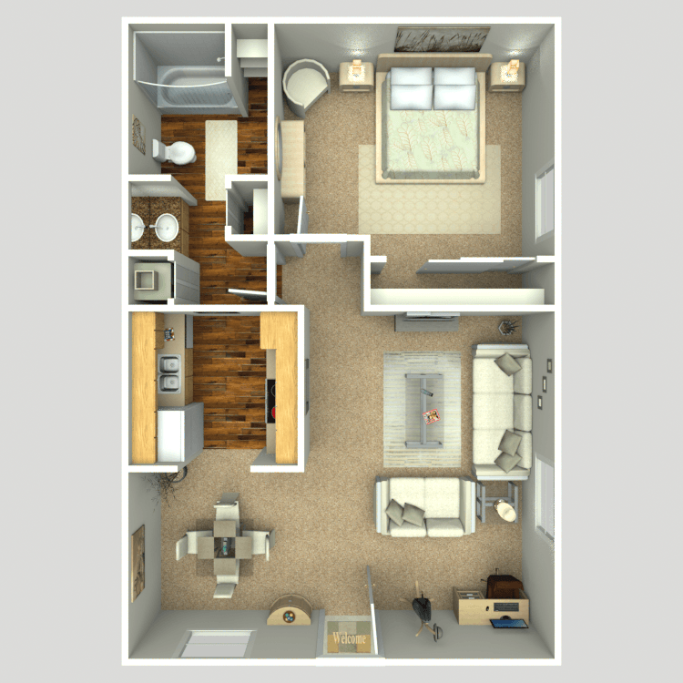 Modelo de apartamento: 1 Bedroom 1 Bathroom1 Dormitorio, 1 Baño, 720 sq ftDisponible Ahora![]()