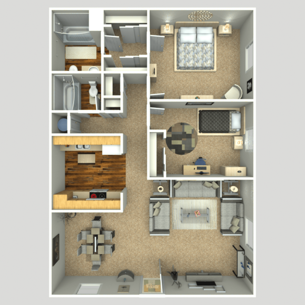 Modelo de apartamento: 3 Bedroom 2 Bathroom3 Dormitorios, 2 Baños, 1320 sq ftDisponible Ahora![]()