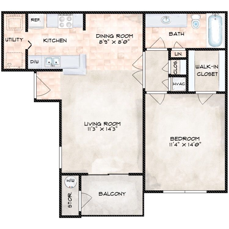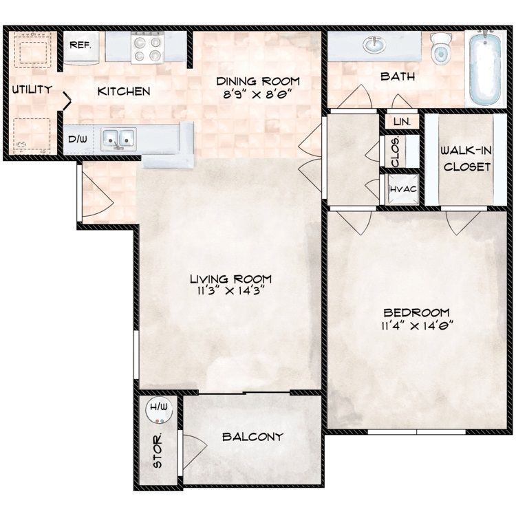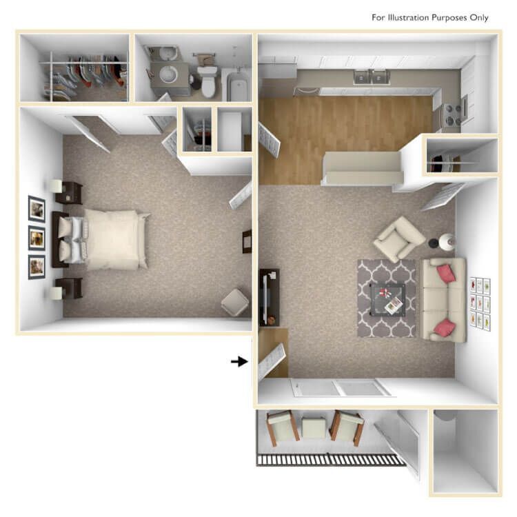 1 Dormitorio, 1 Baño, 689 pies²Disponible AhoraGalería del Modelo