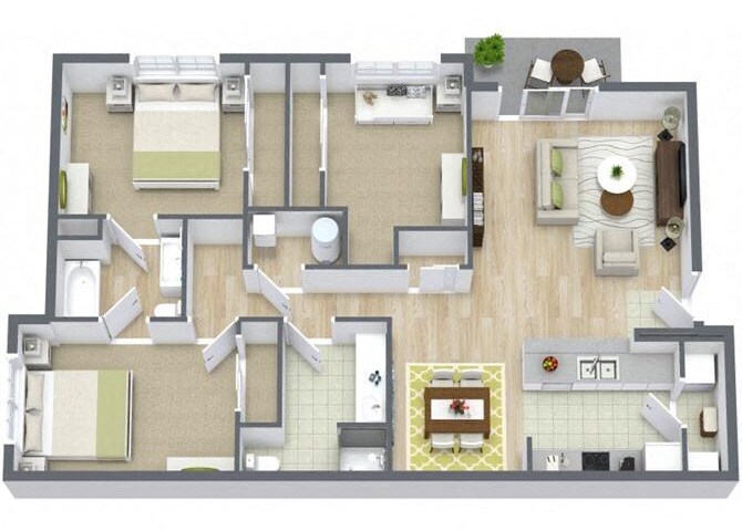 Two Bedroom Two Bath 60% - Plano 1 3 Dormitorios