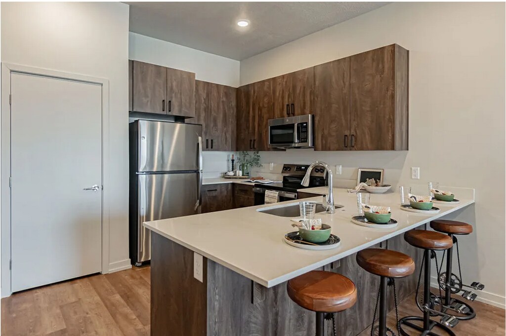 Discover a new standard of apartment living at Riverwalk Apartments – where sophisticated design, everyday comfort, and riverfront living come together. Our brand-new one- and two-bedroom homes range from 740 to 1,200 square feet, with modern features like plank-style flooring, carpeted bedrooms, and elegant tile showers. Each of our apartments in Idaho Falls is thoughtfully crafted for your lifestyle, whether you’re working remotely, hosting friends, or simply unwinding at home. And yes – we’re pet-friendly too. Riverwalk Apartments offers brand-new one- and two-bedroom layouts with a refreshing blend of modern comfort, natural beauty, and refined design. Nestled along the Snake River, our apartments in Idaho Falls place you just minutes from downtown Idaho Falls, top employers, and the city’s most exciting attractions.