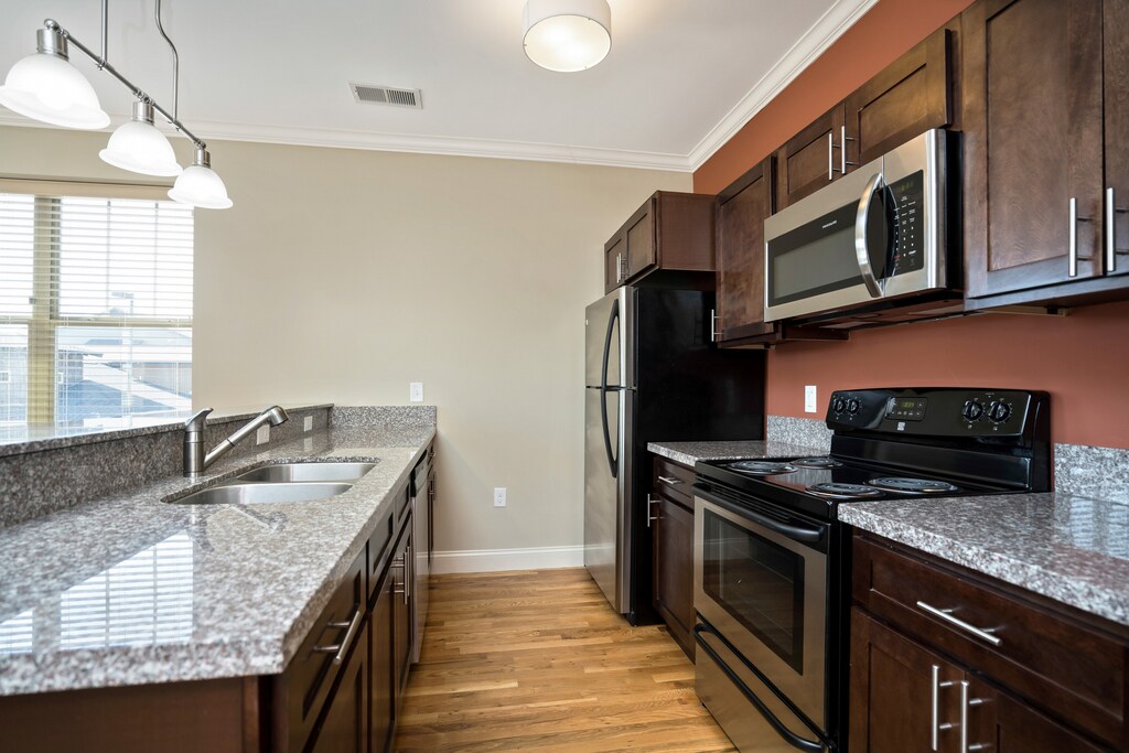 - Encimeras de granito y electrodomésticos de acero inoxidable