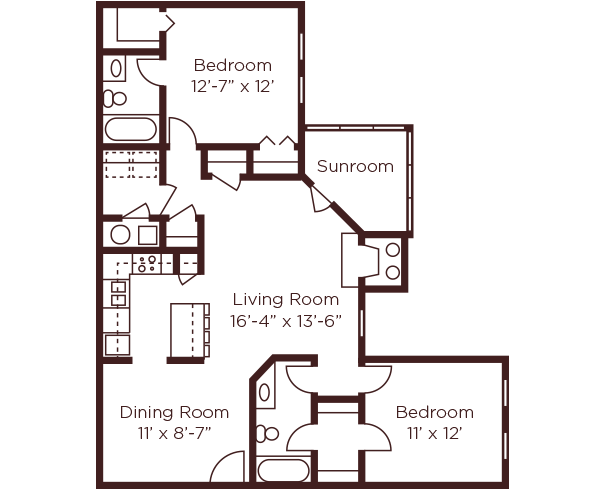 Modelo de apartamento: 2x2 Deluxe$1,1992 Dormitorios, 2 Baños, 1200 sq ftDisponible Ahora![]()