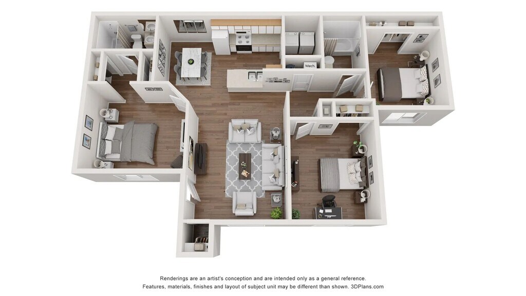 3 Dormitorios, 2 Baños, 1050 pies²Disponible AhoraGalería del Modelo