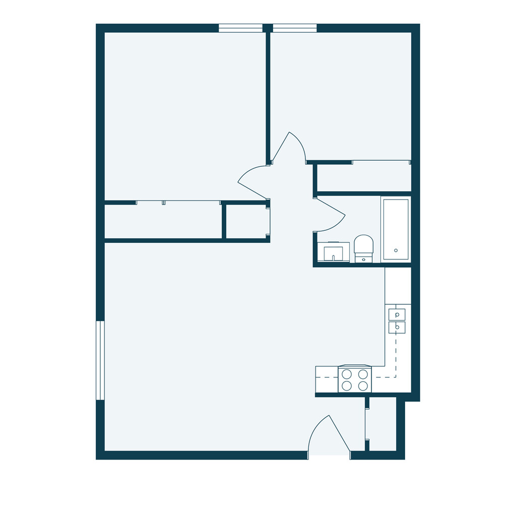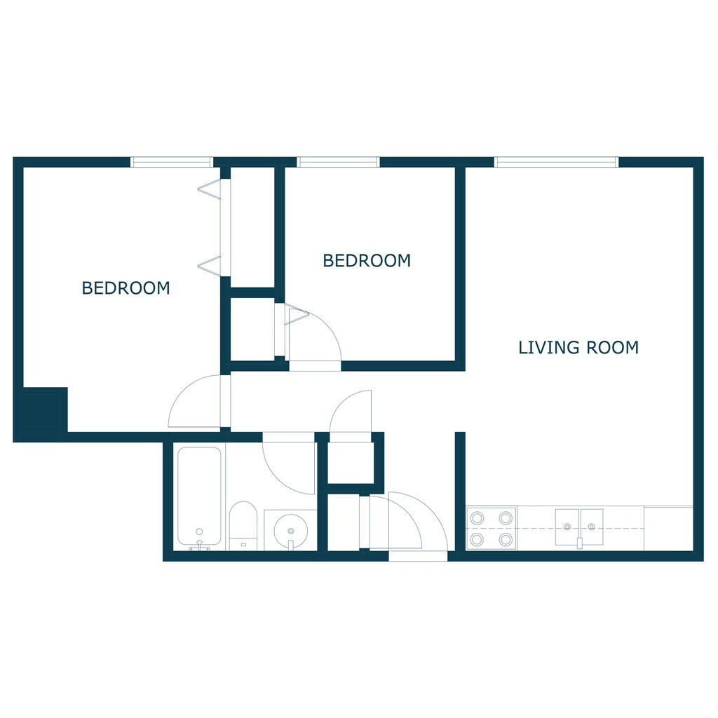 Modelo de apartamento: Two Bedroom 21A2 Dormitorios, 1 Baño, 750 sq ftNo Disponible![]()