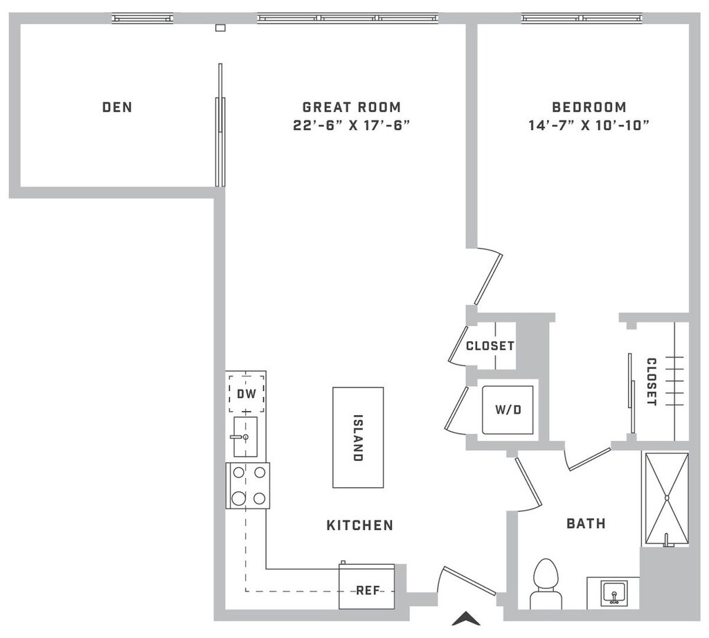 A4 - Imagen 1 Unidad de apartamento: 26-305Modelo de apartamento: A4$2,3951 Dormitorio, 1 Baño, 678 sq ftDisponible December 3, 2025A9 Den