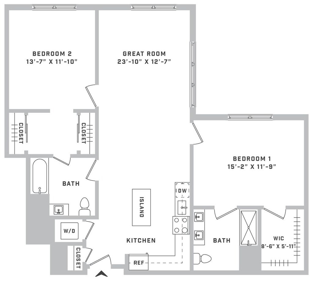 Modelo de apartamento: A5Desde $2,2111 Dormitorio, 1 Baño, 692 sq ftDisponible Ahora![]()