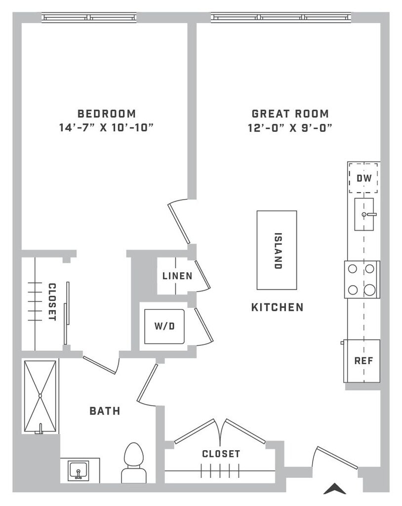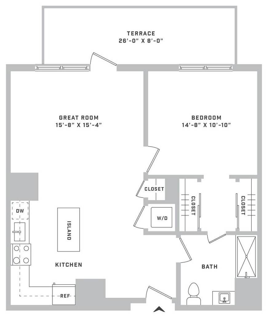 A8 - Imagen 1 Unidad de apartamento: 26-364Modelo de apartamento: A8$2,5801 Dormitorio, 1 Baño, 752 sq ftDisponible AhoraPlano: A4