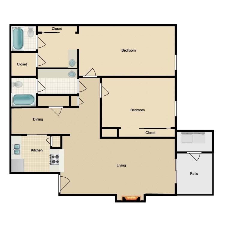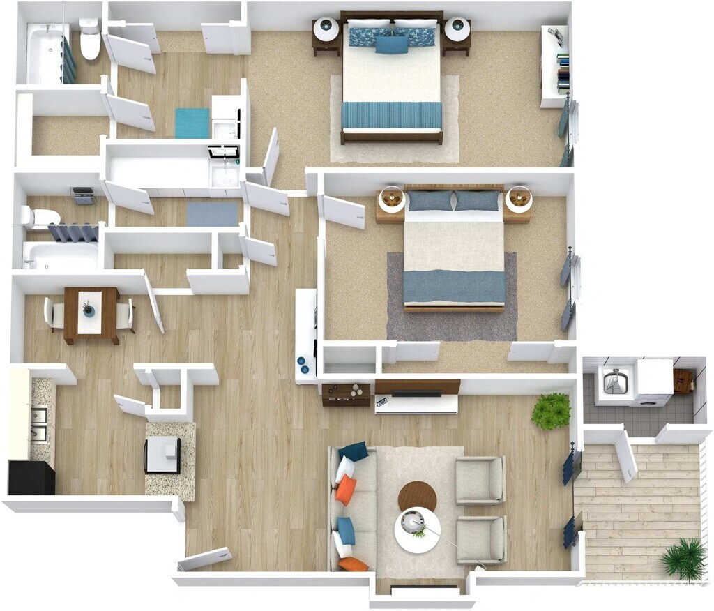 Modelo de apartamento: B32 Dormitorios, 2 Baños, 1048 sq ftDisponible Ahora![]()