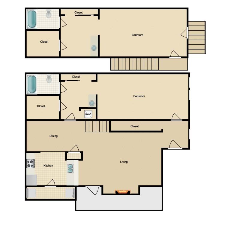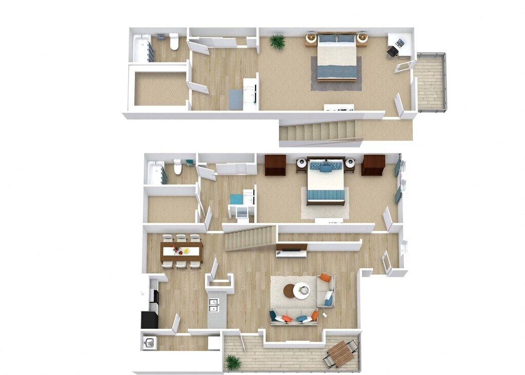 Modelo de apartamento: TH2 Dormitorios, 2 Baños, 1105 sq ftDisponible Ahora![]()