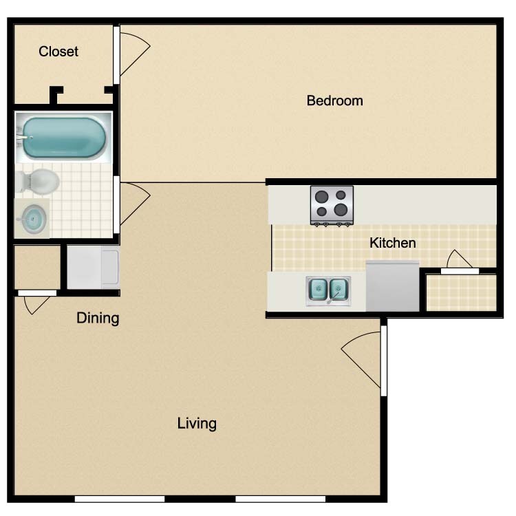 Modelo de apartamento: A31 Dormitorio, 1 Baño, 775 sq ftDisponible Ahora![]()