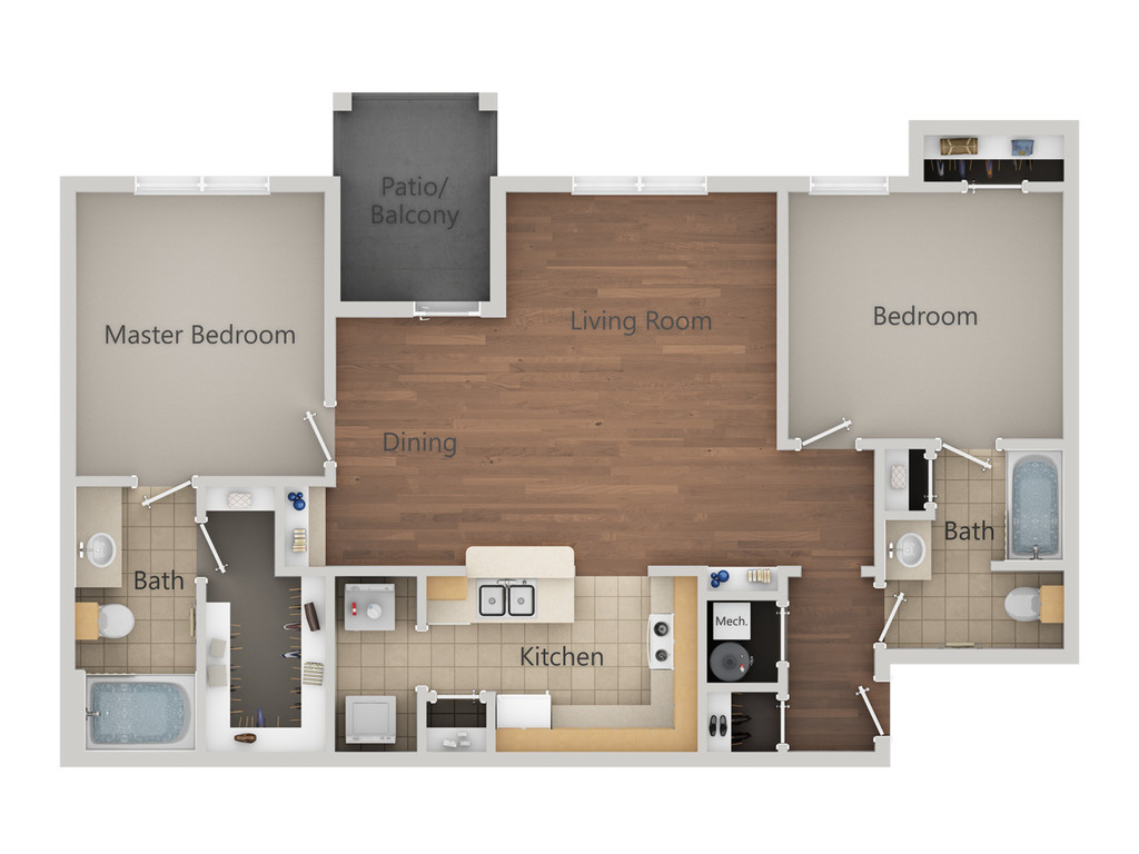1 Dormitorio, 1 Baño, 847 pies²Disponible AhoraGalería del Modelo