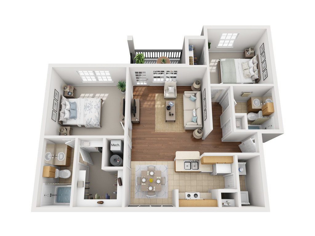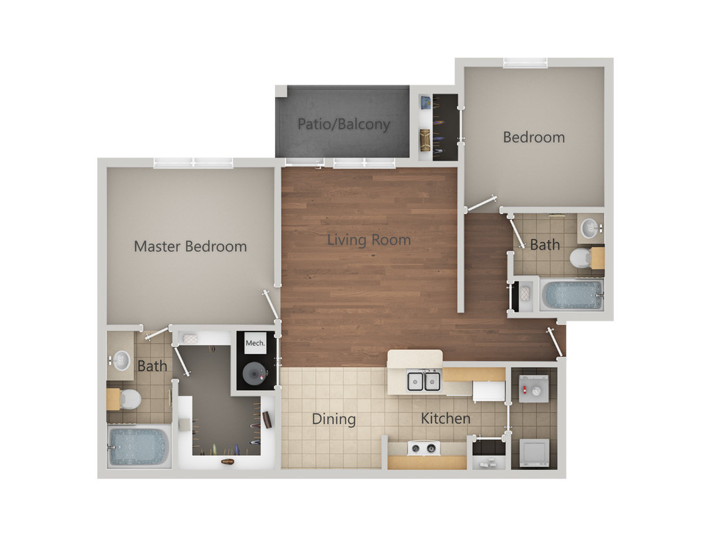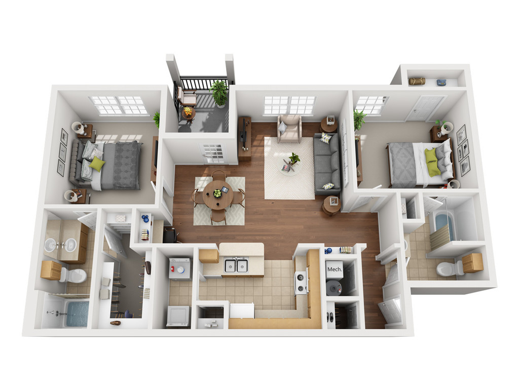 2 Dormitorios, 2 Baños, 1062 pies²El más grandeEsta opción tiene las unidades más grandes para este modeloGalería del Modelo
