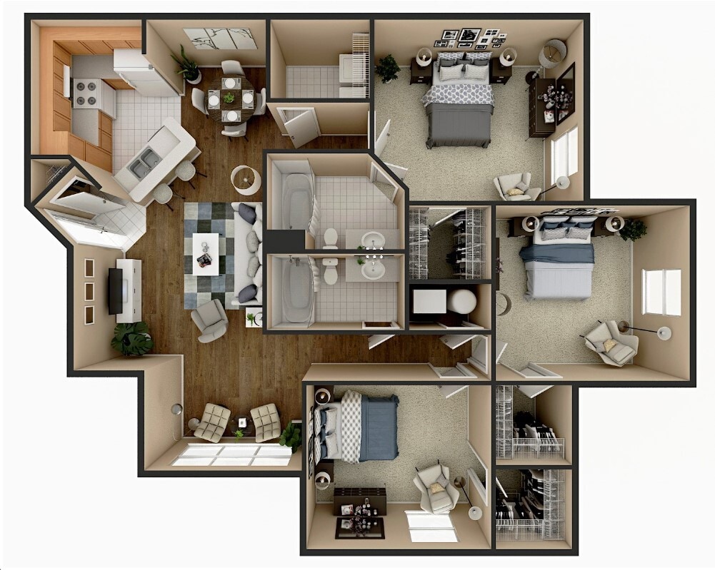 Modelo de apartamento: 3 Bedroom - 60%$1,2253 Dormitorios, 2 Baños, 1189 sq ftDisponible Ahora![]()