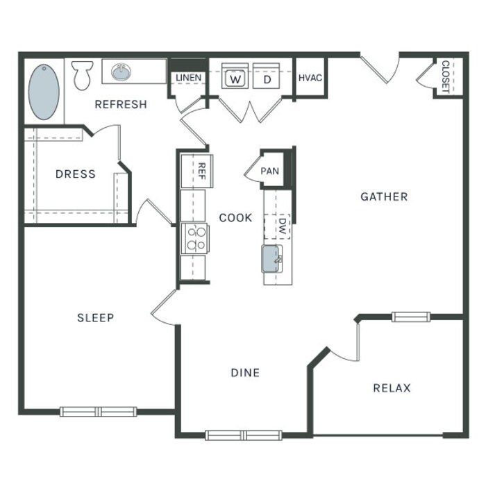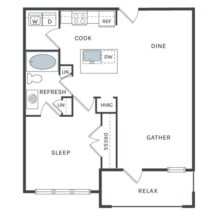 1 Dormitorio, 1 Baño, 751 pies²Disponible AhoraGalería del Modelo
