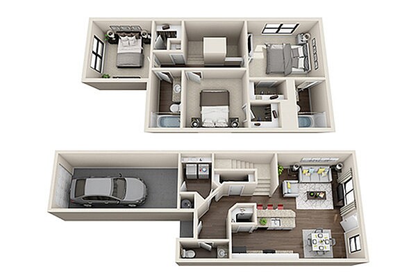 3 dormitorio en Rock Springs Duplexes a partir de $1,615. ¡Llámenos para obtener más información!
