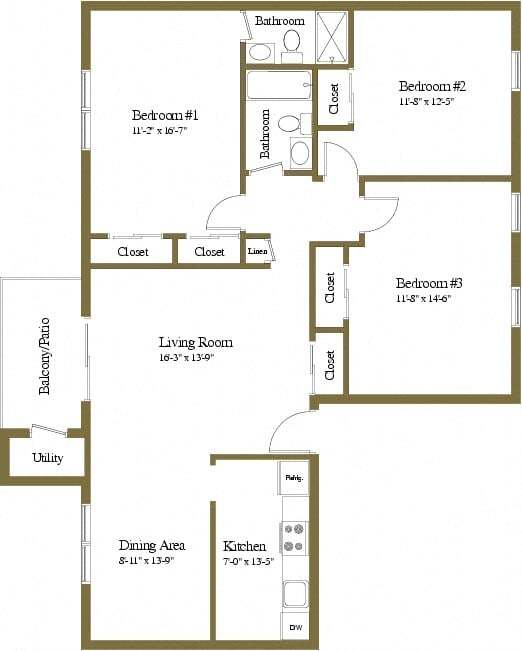 3 Dormitorios, 2 Baños, 1269 pies²Galería del Modelo