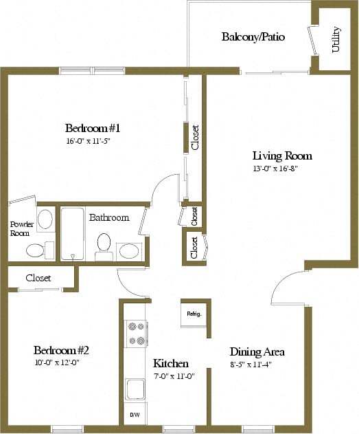 2 Bedrooms 1.5 Bath - Plano 2 ![]()