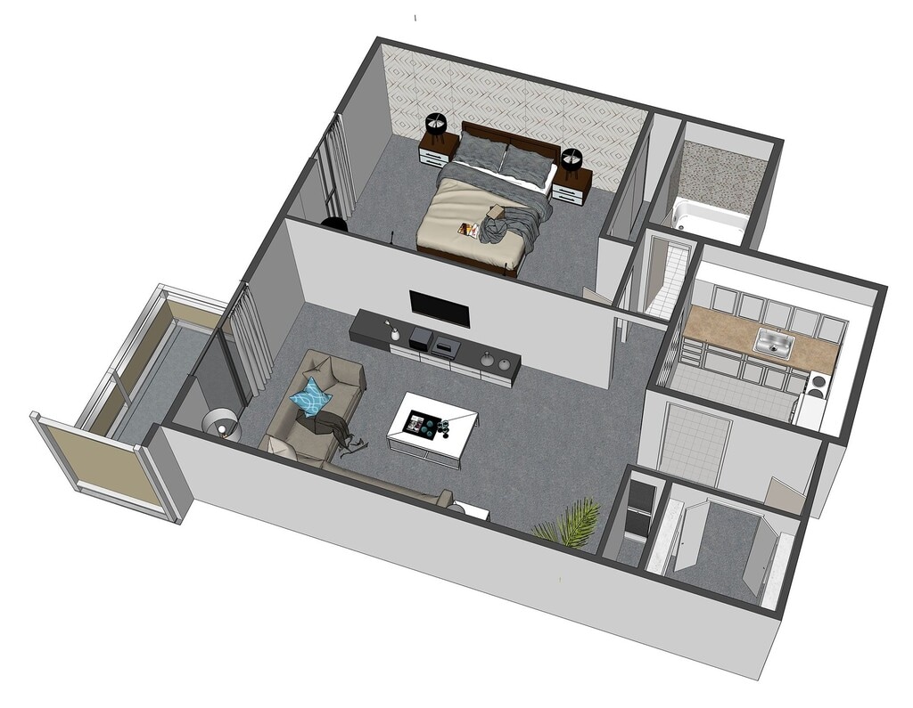 1 Dormitorio, 1 Baño, 788 pies²Disponible AhoraGalería del Modelo