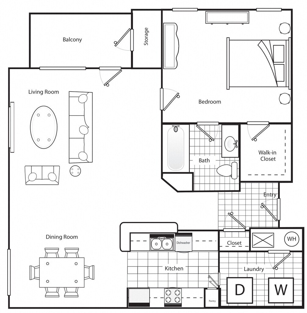 Modelo de apartamento: One Bedroom One Bathroom$9391 Dormitorio, 1 Baño, 975 sq ftDisponible Ahora![]()