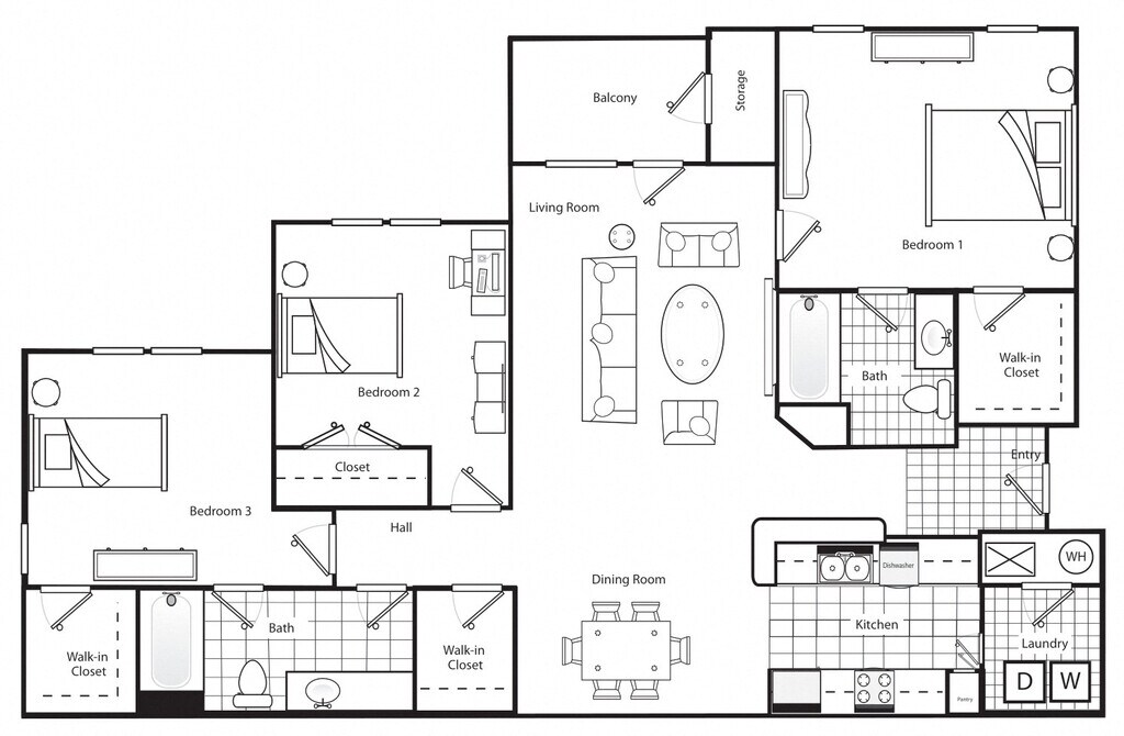 Modelo de apartamento: Three Bedroom Two Bathroom$1,3043 Dormitorios, 2 Baños, 1350 sq ftDisponible Ahora![]()