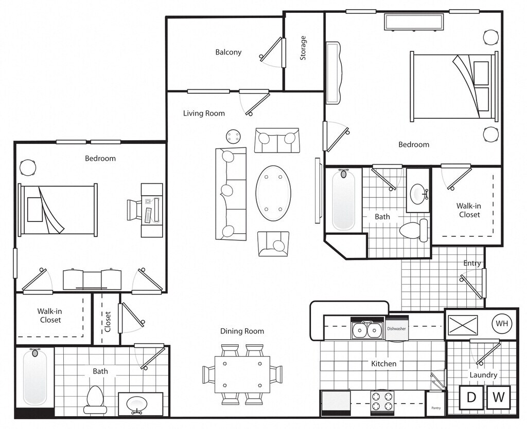 Modelo de apartamento: Two Bedroom Two Bathroom$1,1332 Dormitorios, 2 Baños, 1175 sq ftDisponible Ahora![]()