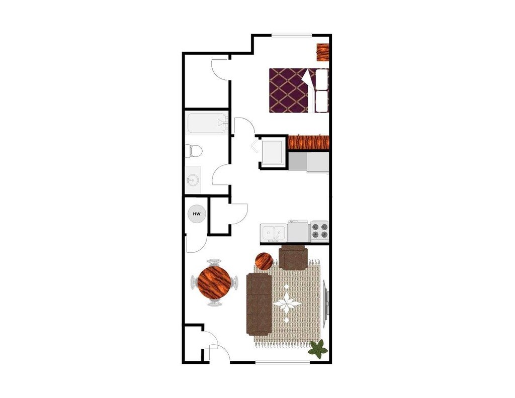 1 Dormitorio, 1 Baño, 600 pies²Galería del Modelo